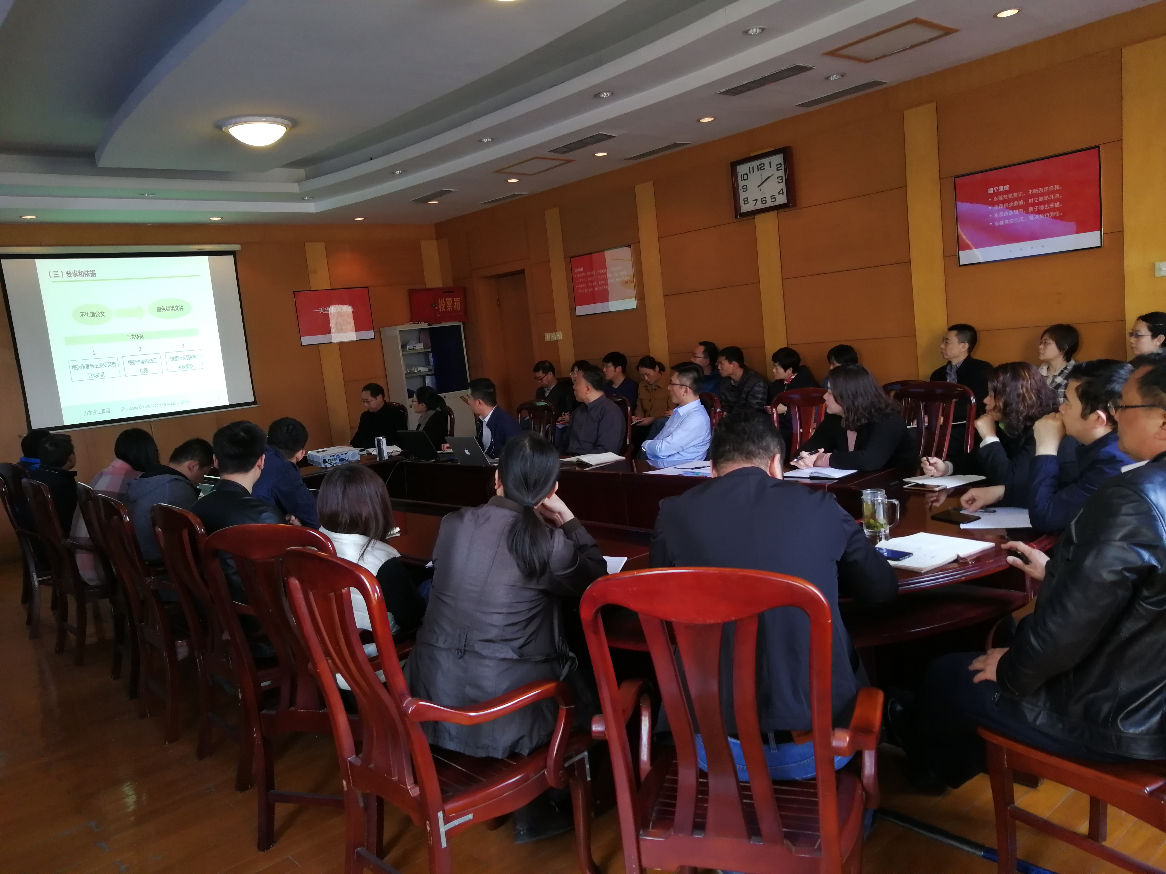 辦公室主任宋茂兵作了題為《公文培訓》的專題講座。講座結合工作實際,分別從公文種類、公文格式、公文寫作步驟、常見問題舉例四個方面做了詳細全面的講解,運用相關案例分析了公文寫作方面存在的問題與不足,與職工進行現場互動,答疑釋惑,使大家對公文寫作有了更新的認識。